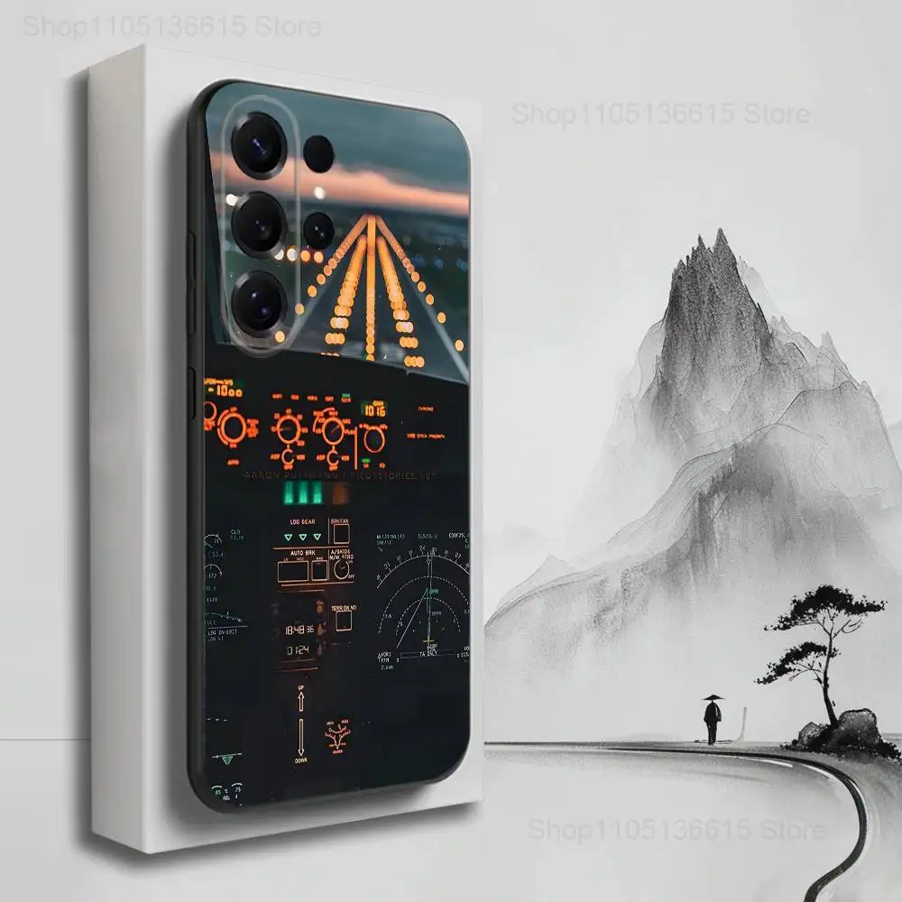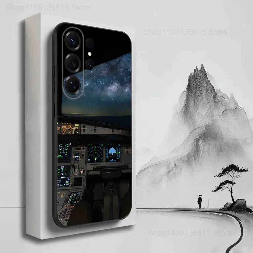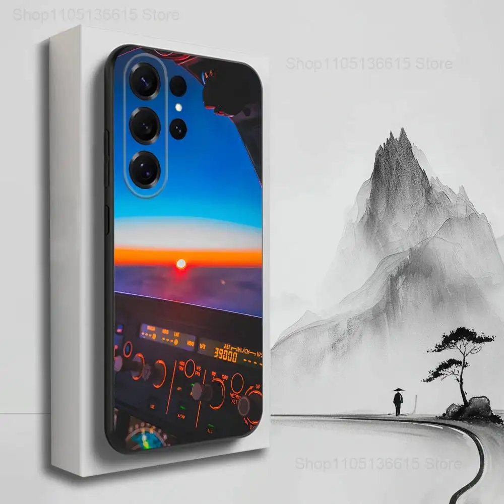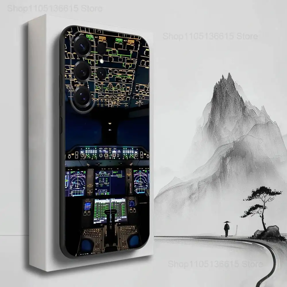 Aviation Cockpit Pilot Phone Case For Samsung S25,S24,S23,S22,S21,S20,S10,S9,Ultra,Plus,Lite,FE,Soft Silicone Black Cover