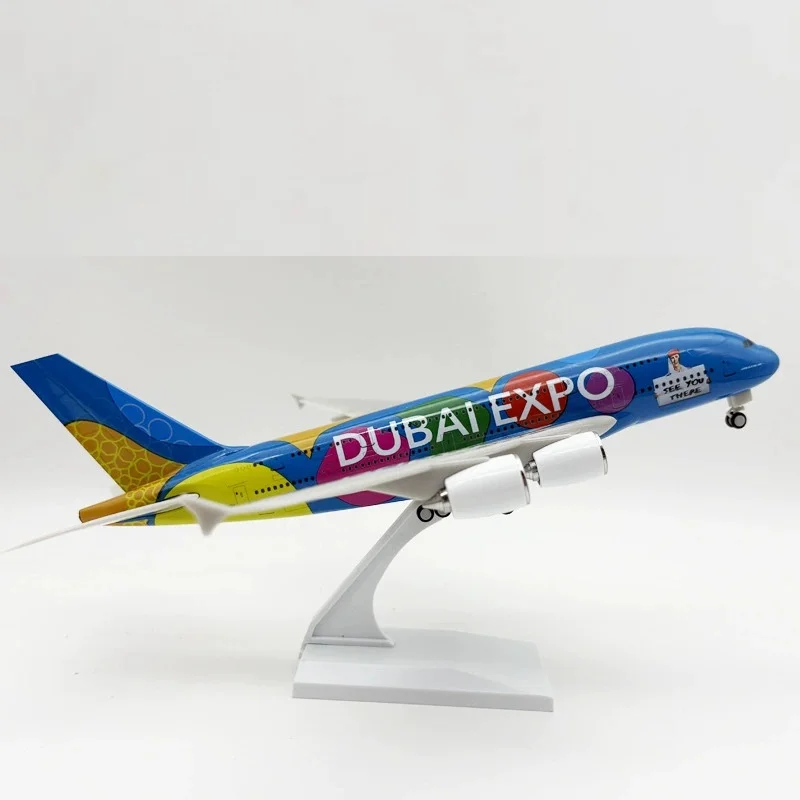 Display Toy Resin Plane 30CM Scale Model Diecast Airways A380 Dubai Expo Painted Aviation Airplane With Wheel Collection Gifts