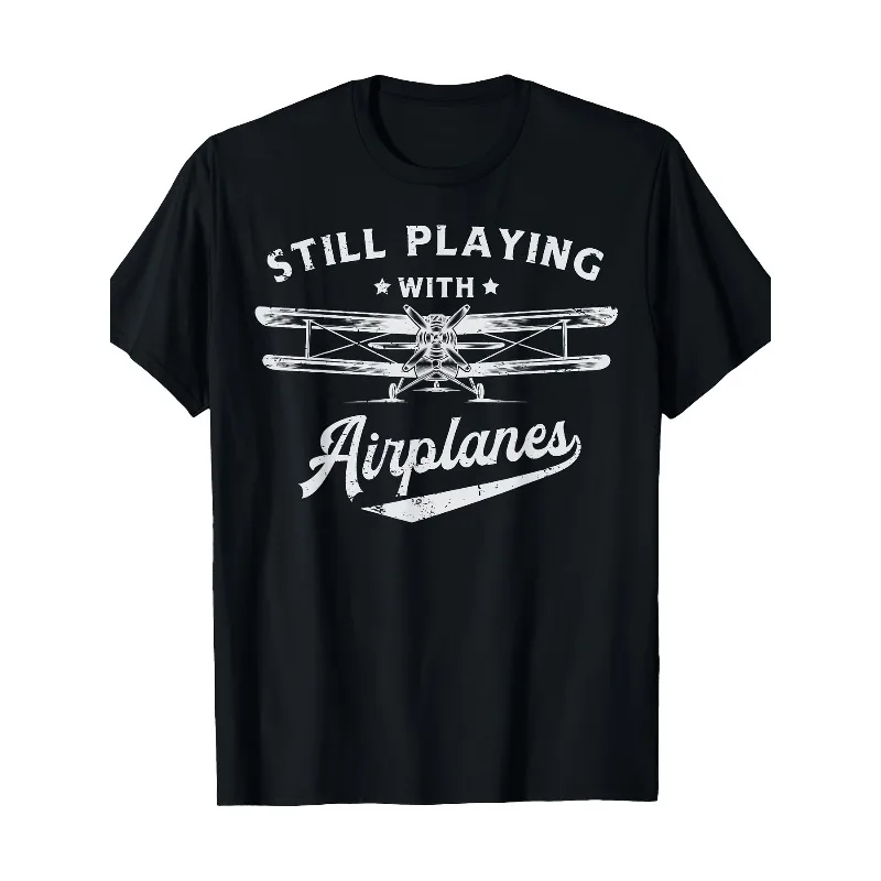 Men's Airplane Pattern Printed T-shirt Cotton Round Neck Short Sleeved Pilot Design Aviation Enthusiast Airplane Theme T-shirt