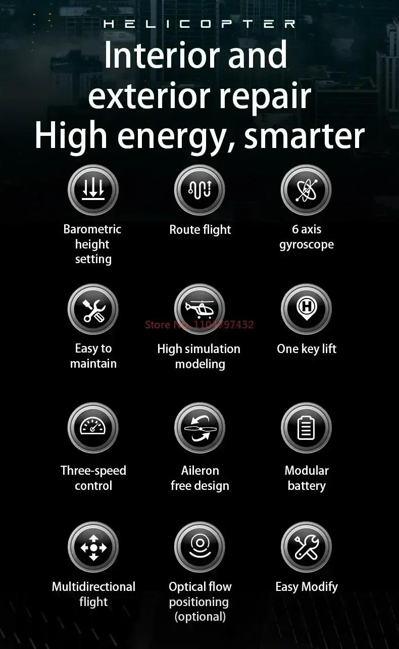 Adopting a single blade aileron free design, with a 6-axis electronic gyroscope for stability enhancement and the addition of a barometer for altitude control, the flight is more stable and easier to control! Long battery life! Impact resistant! The appearance is scaled down in proportion to the actual aircraft, which can not only control flight but also serve as a decoration. The battery life of c138 can reach about 12 minutes! (Optional optical flow positioning)