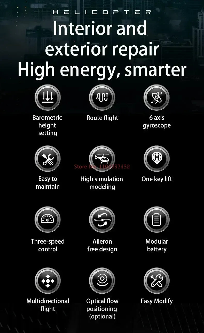 1. No aileron design, incorporating aerodynamic principles to design propellers that provide strong power and body stability. Using a 6-axis gyroscope for ultra stable flight
